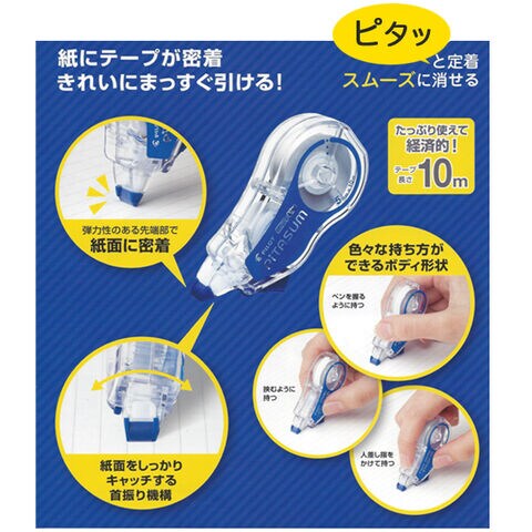 【メール便可】新開発の「弾性ヘッド」&首振り機構でテープが紙に密着。消したいところをピタッとスムーズに修正!