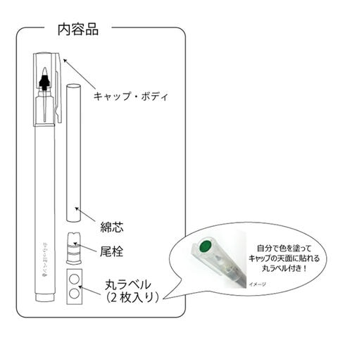内容品:キャップ・ボディ、綿芯、尾栓、丸ラベル