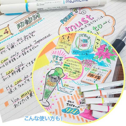 ノートの大事なところににじみを気にせず使えるので、よりカラフルできれいなノートを仕上げることができます。