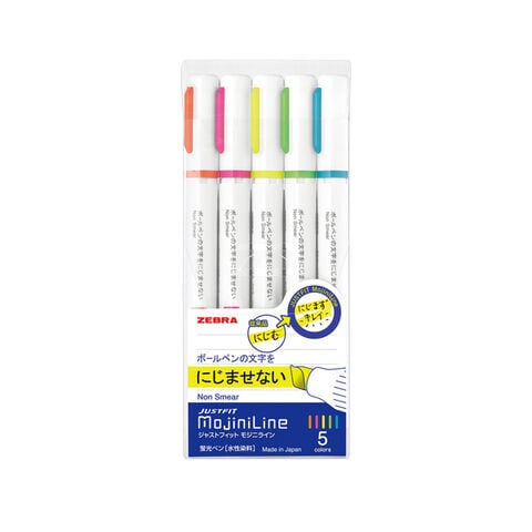 【メール便可】ボールペンで書いた文字がにじまない蛍光ペン『ジャストフィット モジニライン』5色セット