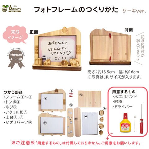 ※手作りキットを作成にあたり、木工用接着剤(ボンド等)とプラスのドライバーが必要となりますので、ご用意お願いします。