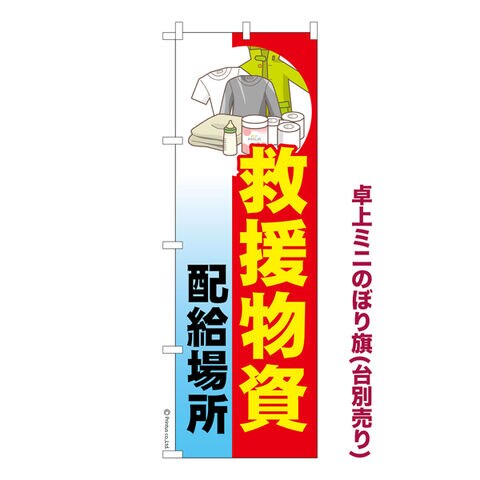 卓上ミニのぼり旗 救援物資配給場所 防災 既製品卓上ミニのぼり 納期ご相談ください 卓上サイズ13cm幅
