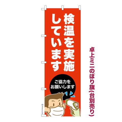 卓上ミニのぼり旗 検温を実施しています 感染症予防 既製品卓上ミニのぼり 納期ご相談ください 卓上サイズ13cm幅