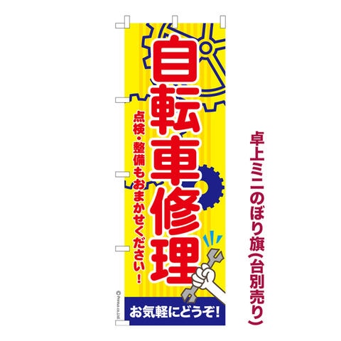 商品名「既製品ミニのぼり旗 自転車修理 高品質デザイン メール便可」