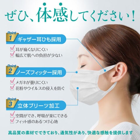 材質:本体:ポリプロピレン・ポリエチレン/耳かけ部分:ポリプロピレン/ノーズフィットワイヤー:ポリエチレン