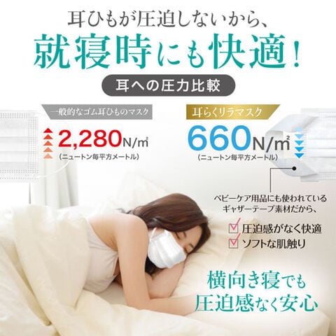 ・耳かけ部分は幅広で伸縮性に優れ、耳が痛くなりにくい。