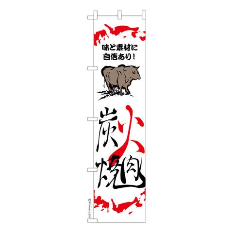 スリム のぼり旗 炭火焼肉3 焼き肉 既製品のぼり 納期ご相談ください 450mm幅