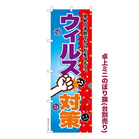 商品名「既製品ミニのぼり旗 ウイルス対策3 高品質デザイン メール便可」