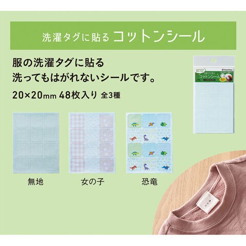 服の洗濯タグに貼る、洗ってもはがれないコットンシールです。