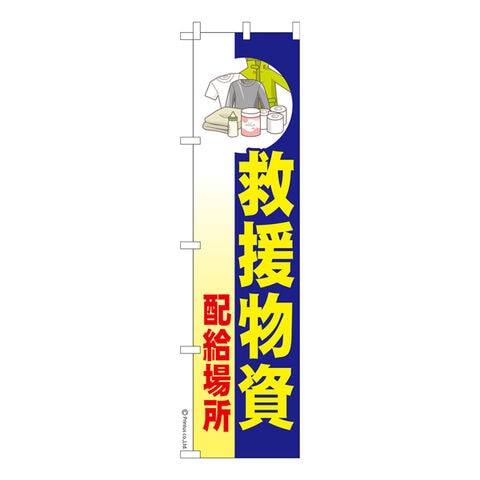 スリム のぼり旗 救援物資配給場所2 災害 既製品のぼり 納期ご相談ください 450mm幅