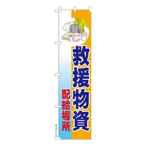 スリム のぼり旗 救援物資配給場所3 災害 既製品のぼり 納期ご相談ください 450mm幅