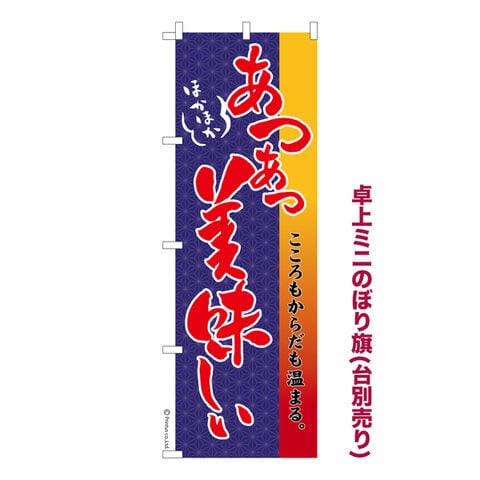 商品名「既製品ミニのぼり旗 あつあつ 美味しい3 高品質デザイン メール便可」