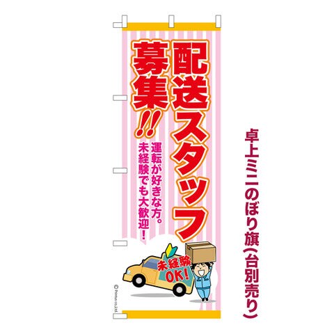 商品名「既製品ミニのぼり旗 配送スタッフ募集3 高品質デザイン メール便可」