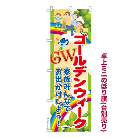 卓上ミニのぼり旗 GWは家族みんなで2 ゴールデンウィーク 既製品卓上ミニのぼり 納期ご相談ください 卓上サイズ13cm幅