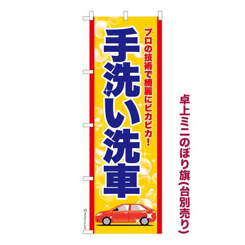 商品名「既製品ミニのぼり旗 手洗い洗車2 高品質デザイン メール便可」