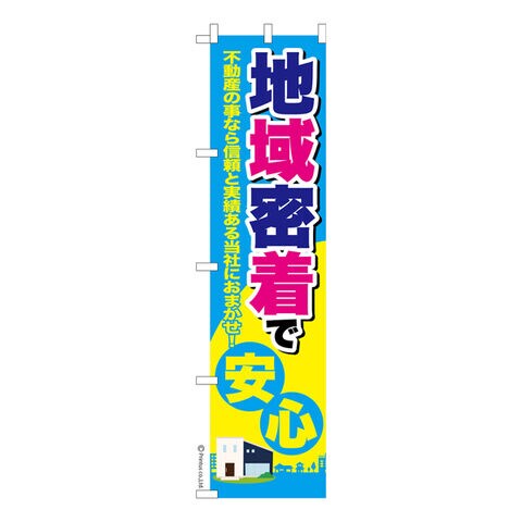 スリム のぼり旗 地域密着で安心 不動産 既製品のぼり 納期ご相談ください 450mm幅