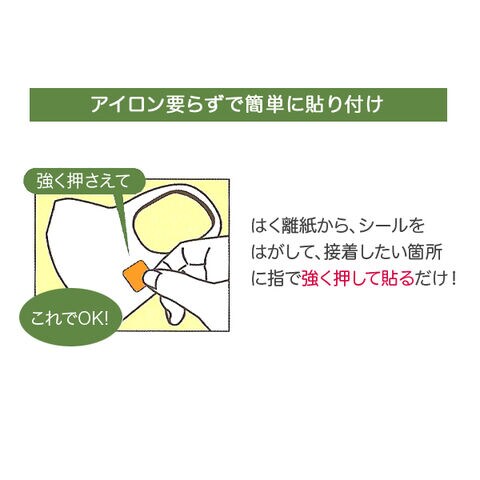 ●貼付後の本商品の洗濯の耐久性は、貼付けた生地や貼付の状態、洗濯機の種類などの条件によって異なります。