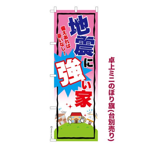 卓上ミニのぼり旗 地震に強い家3 住宅 既製品卓上ミニのぼり 納期ご相談ください 卓上サイズ13cm幅