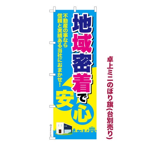 卓上ミニのぼり旗 地域密着で安心 不動産 既製品卓上ミニのぼり 納期ご相談ください 卓上サイズ13cm幅