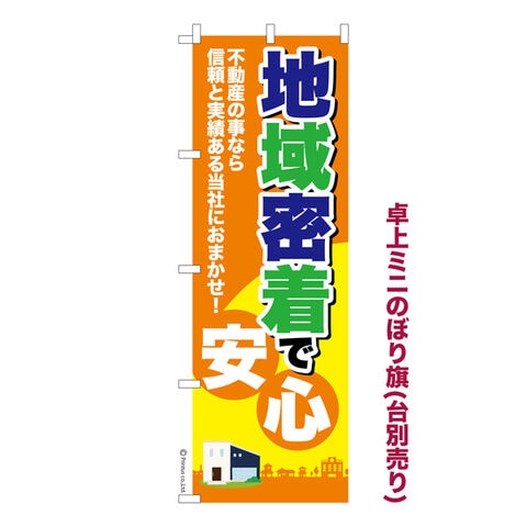 卓上ミニのぼり旗 地域密着で安心2 不動産 既製品卓上ミニのぼり 納期ご相談ください 卓上サイズ13cm幅