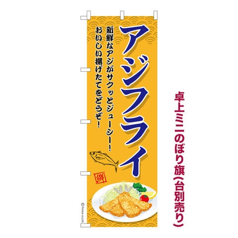 商品名「既製品ミニのぼり旗 アジフライ2 高品質デザイン メール便可」