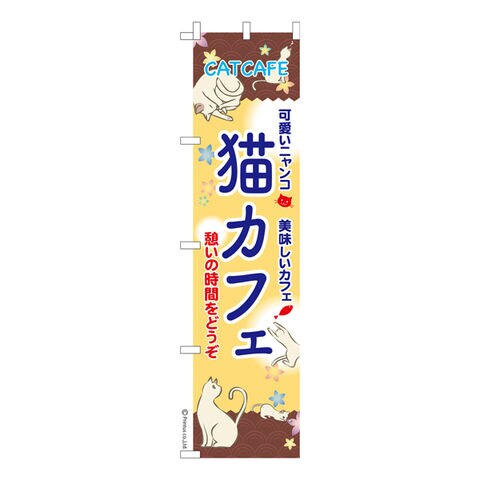 スリム のぼり旗 猫カフェ2 Cat 既製品のぼり 納期ご相談ください 450mm幅