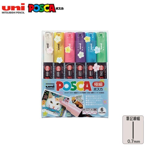 【メール便可】鮮やかな発色で濃い色の上に書ける ポスカ 極細 6色セット