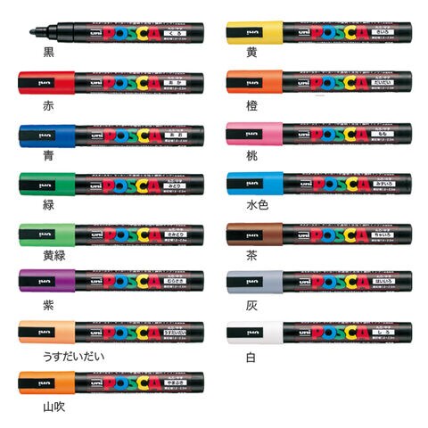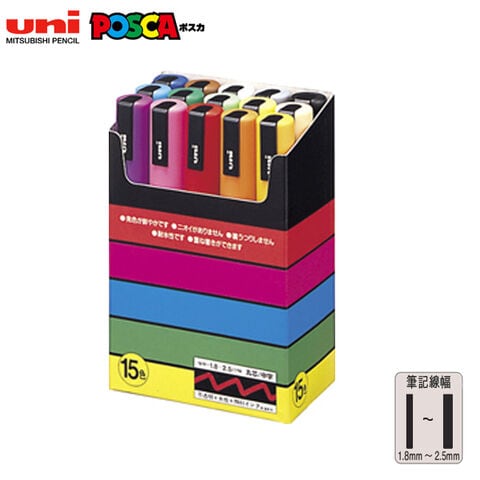 三菱鉛筆 uni ポスカ POSCA 中字丸芯 スタンダードカラー 15色セット PC-5M 15C
