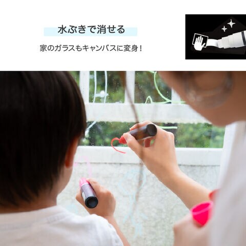 従来品「ポスカ」のインク改良を行い、水ぶきで消せます。