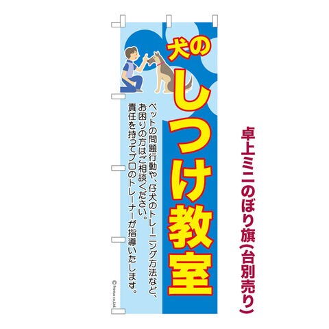 商品名「既製品ミニのぼり旗 犬のしつけ教室 高品質デザイン メール便可」