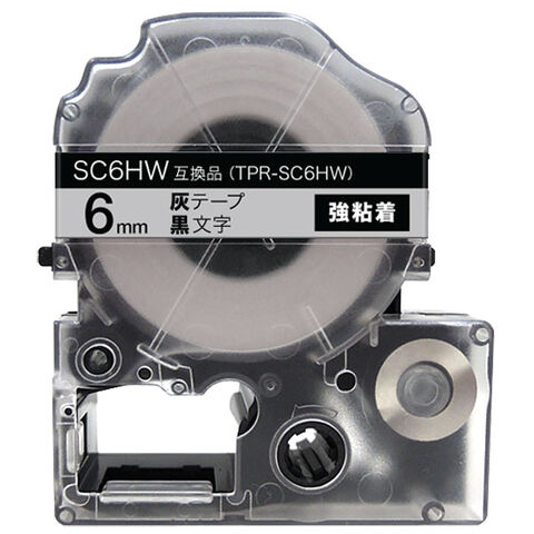 キングジム用 テプラ PRO 互換 テープカートリッジ SC6HW カラーラベル 強粘着 6mm/灰テープ/黒文字