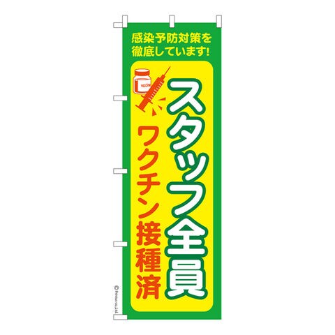 のぼり旗 スタッフ全員ワクチン接種済 感染予防 既製品のぼり 納期ご相談ください 600mm幅