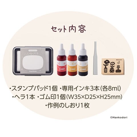 ・専用インキ3本(各8ml)/紅色(べにいろ)、山吹色(やまぶきいろ)、砂色(すないろ)