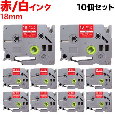 ブラザー用 ピータッチ 互換 テープ TZe-445 ラベルカートリッジ 10個セット ピータッチキューブ対応 18mm/赤テープ/白文字
