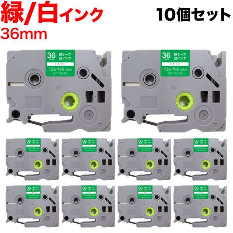 ブラザー用 ピータッチ 互換 テープ TZe-765 ラベルカートリッジ 10個セット ピータッチキューブ対応 36mm/緑テープ/白文字