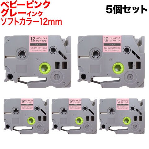 ブラザー用 ピータッチ 互換 テープ TZe-SW-12PH ラベルカートリッジ ソフト 5個セット ピータッチキューブ対応 12mm/ベビーピンクテープ/グレー文字