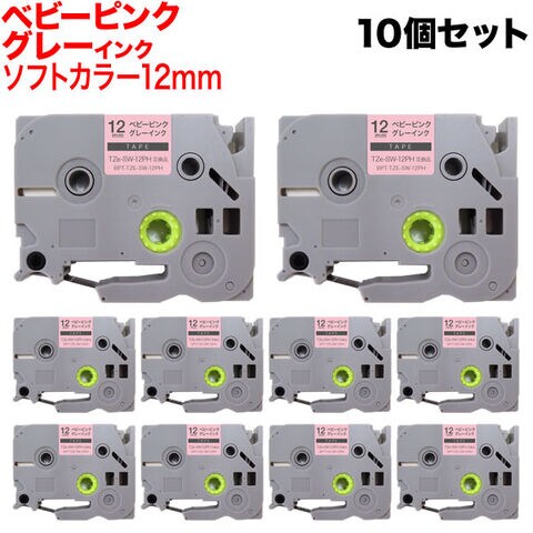 ブラザー用 ピータッチ 互換 テープ TZe-SW-12PH ラベルカートリッジ ソフト 10個セット ピータッチキューブ対応 12mm/ベビーピンクテープ/グレー文字