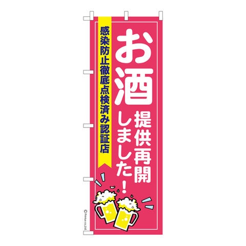 のぼり旗 お酒提供再開しました 感染防止徹底点検 既製品のぼり 納期ご相談ください 600mm幅