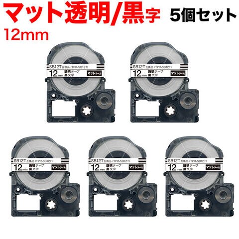 キングジム用 テプラ PRO 互換 テープカートリッジ SB12T マットラベル 強粘着 5個セット 12mm/透明テープ/黒文字/マットラベル