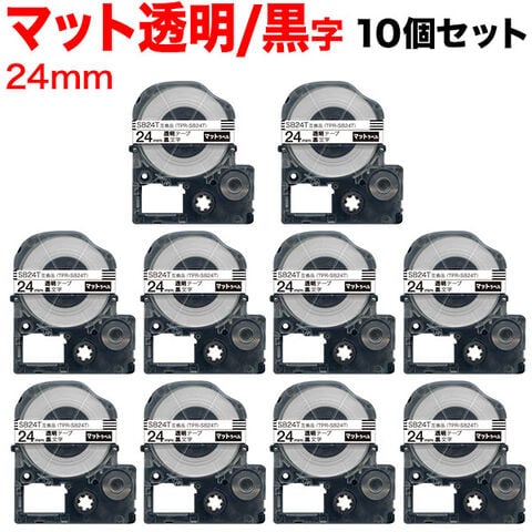 キングジム用 テプラ PRO 互換 テープカートリッジ SB24T マットラベル 強粘着 10個セット 24mm/透明テープ/黒文字/マットラベル