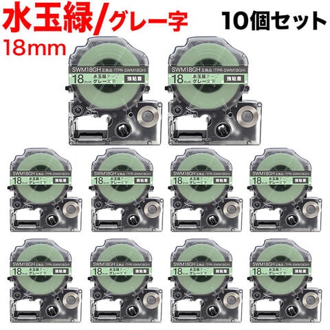 キングジム用 テプラ PRO 互換 テープカートリッジ SWM18GH 模様ラベル 強粘着 10個セット 18mm/水玉緑テープ/グレー文字のレビュー