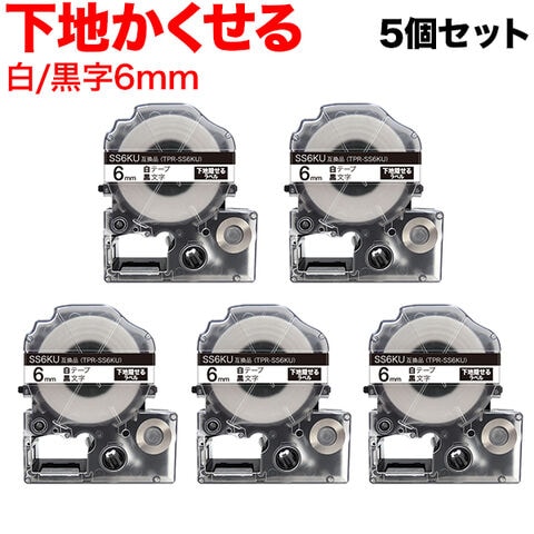キングジム用 テプラ PRO 互換 テープカートリッジ SS6KU 下地がかくせるラベル 強粘着 5個セット 6mm/白テープ/黒文字/下地がかくせるラベル