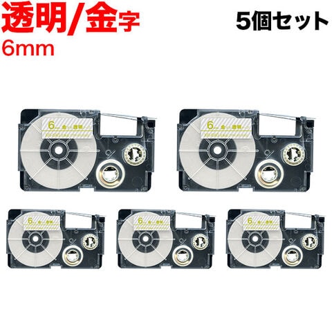 カシオ用 ネームランド 互換 テープカートリッジ XR-6XG ラベル 5個セット 6mm/透明テープ/金文字