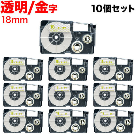 カシオ用 ネームランド 互換 テープカートリッジ XR-18XG ラベル 10個セット 18mm/透明テープ/金文字