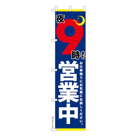 商品名「のぼり旗 夜9時まで営業中 既製品のぼり 高品質デザイン【メール便可】」
