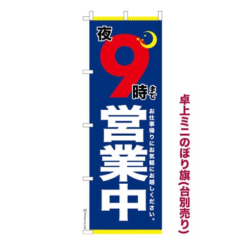 商品名「既製品ミニのぼり旗 夜9時まで営業中 高品質デザイン メール便可」