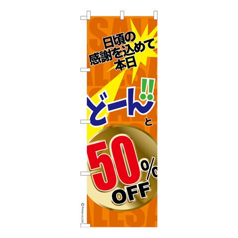 商品名「のぼり旗 どーんと50%OFF3 既製品のぼり 高品質デザイン【メール便可】」