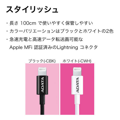 ADATA の Apple MFi 認証済み Sync & Charge Lightning ケーブルは、