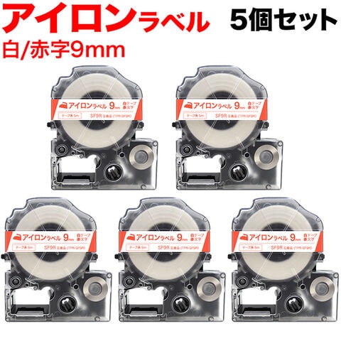 キングジム用 テプラ PRO 互換 テープカートリッジ SF9R アイロンラベル 5個セット 9mm/白テープ/赤文字/アイロンラベル