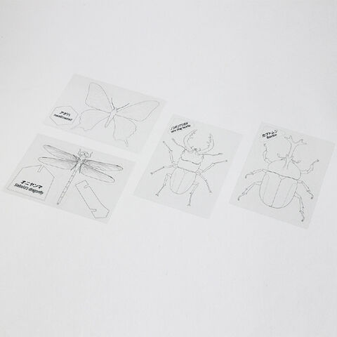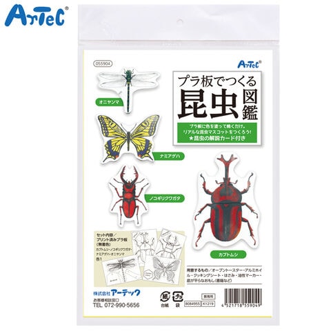 セット内容:印刷済みプラ板(カブトムシ、クワガタ、チョウチョ、トンボ)×各1